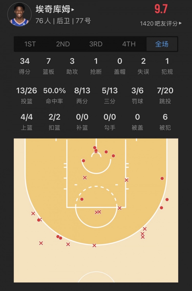 Lượt chọn số 3 của 76ers VJ-Edgecomb chơi 42,2 phút