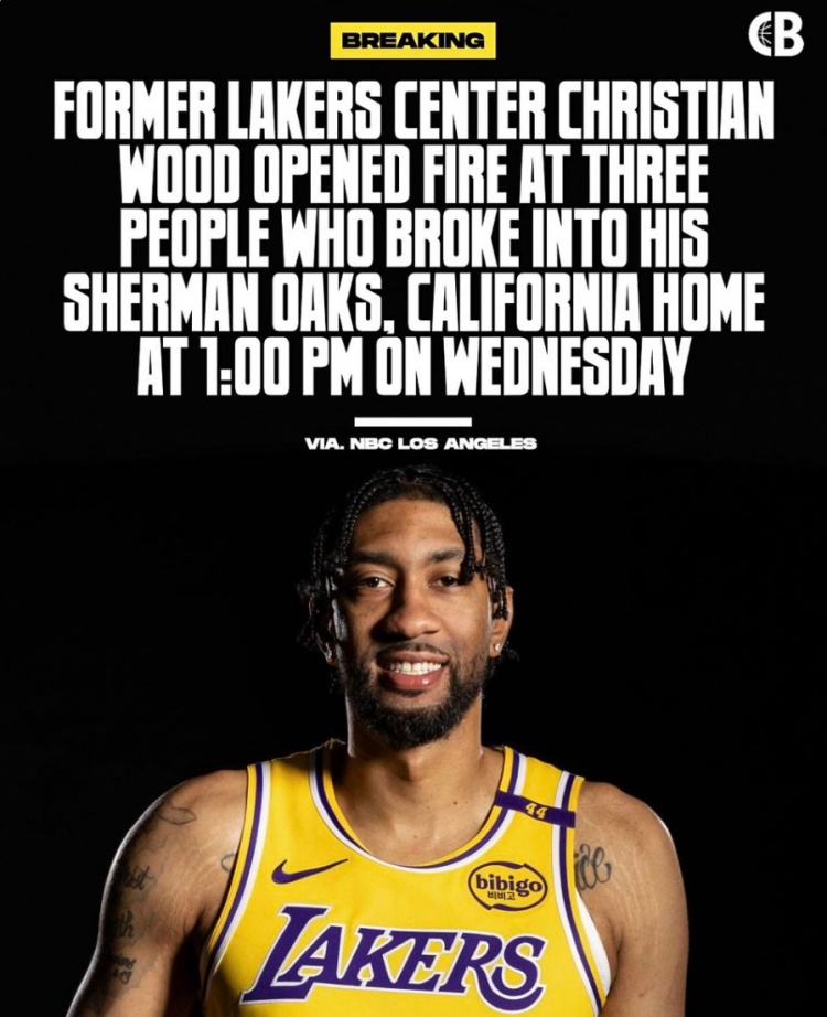 Theo phương tiện truyền thông Hoa Kỳ NBC Los Angeles, vào lúc 1 giờ chiều theo giờ địa phương ngày thứ Tư, nơi ở của cựu trung tâm Los Angeles Lakers, Christian Wood ở Sherman Oaks, California, đã bị ba nghi phạm trộm đột nhập.
