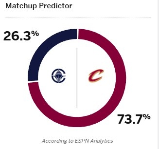 ESPN đưa ra dự đoán tỷ lệ chiến thắng chỉ là 26,3% cho Clippers và 73,7% cho Cavaliers.