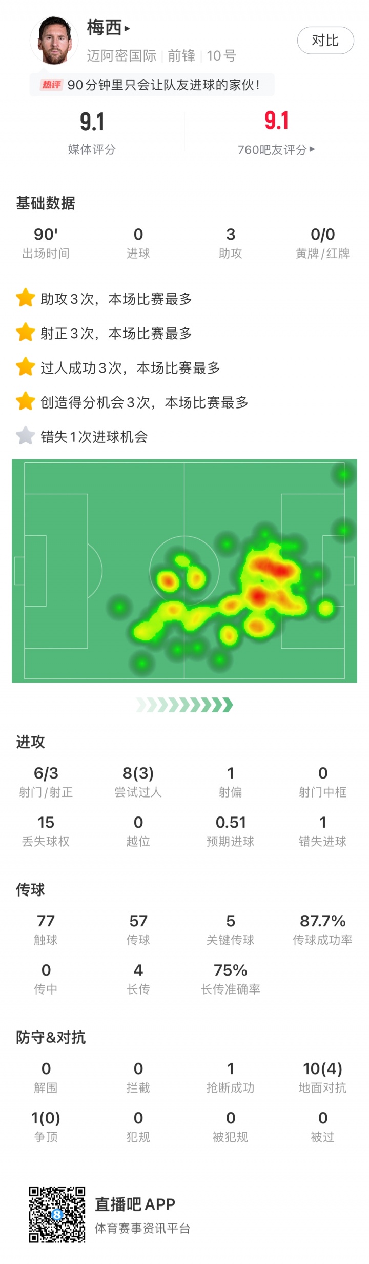 Dữ liệu của Messi trong trò chơi này: Hỗ trợ và bỏ lỡ cơ hội ghi bàn một lần, Media đã ghi được 9,1 điểm