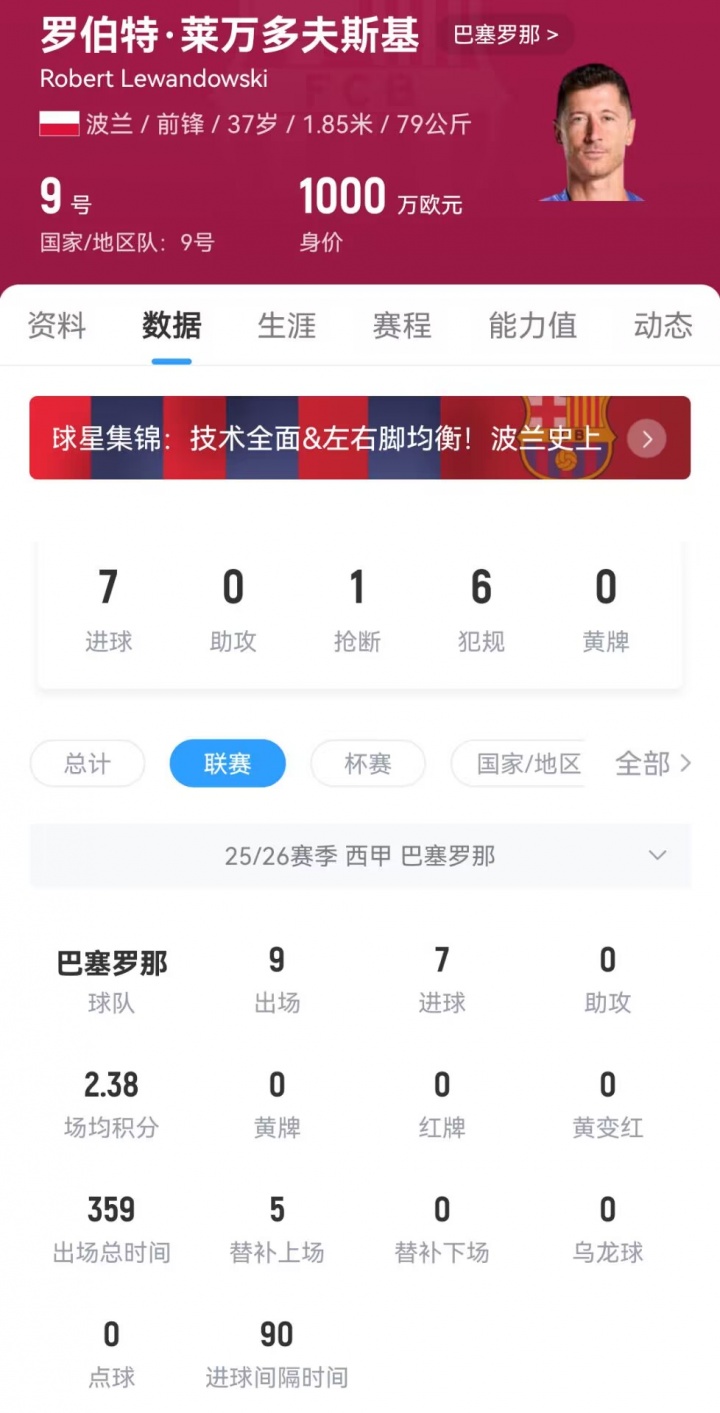 Mùa giải này, mặc dù số lần ra sân của Lewandowski ở Barcelona đã giảm do tuổi tác và chấn thương ngày càng gia tăng, nhưng anh vẫn ghi 7 bàn cho Barcelona sau 9 lần ra sân ở La Liga, các bàn thắng của anh vẫn ổn định và hiệu quả.