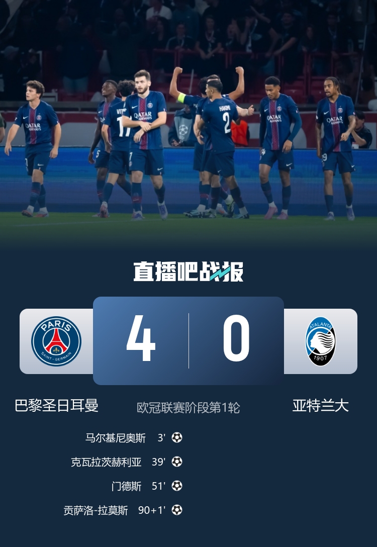 có một khởi đầu tốt! Paris 4-0 Atlanta Marbinhos đạt K77 và ghi một bàn thắng. Barcola bị mất điểm