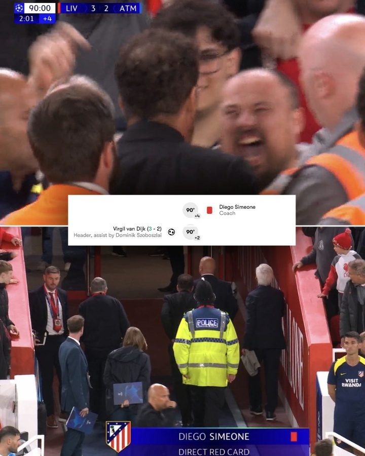 Trò chơi lấy nét của vòng đầu tiên của Champions League, Liverpool đã đánh bại Atletico Madrid 3-2, và sau bàn thắng cuối cùng, Simeone có màu đỏ. Sau trận đấu, Simeone được phỏng vấn.